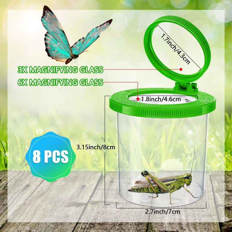 - What You Will Receive: package include 8 pieces magnifying insect box, red/green/orange bright color, exquisite, enough quality for child grandchild to share them with friends, so as to inspect the insect together.Perfect for kids that live to collect insects and view with magnifying glass.