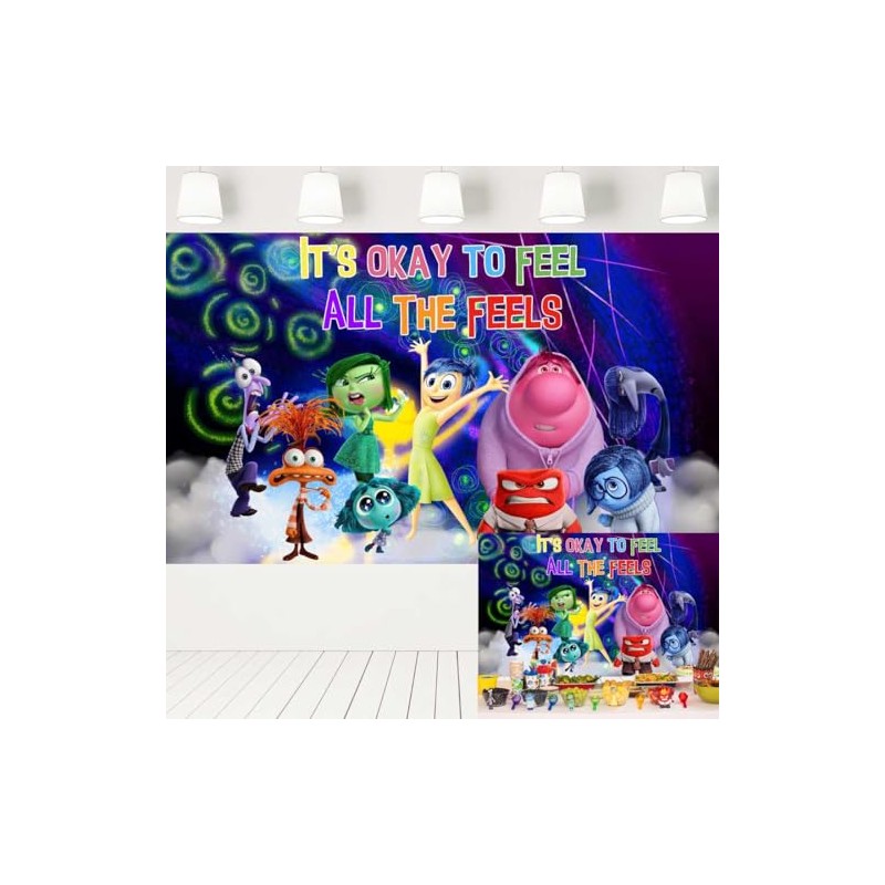 Inside Movie 2 Themed Backdrop Nine Emotions Joy Galaxy Background It's Okay to Feel All The Feels Banner for Birthday Party 5x3 ft 581
