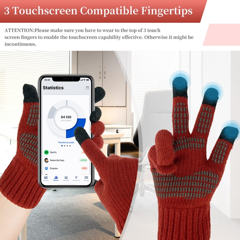 • Touchscreen & Anti-slip Gloves: Navigate your touchscreen devices effortlessly without removing your gloves. The silicone application on the palms and fingers ensures a firm grip, reducing the risk of slipping items or mishandling devices.