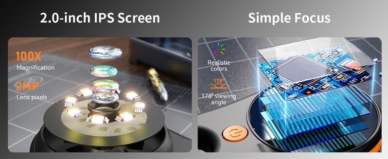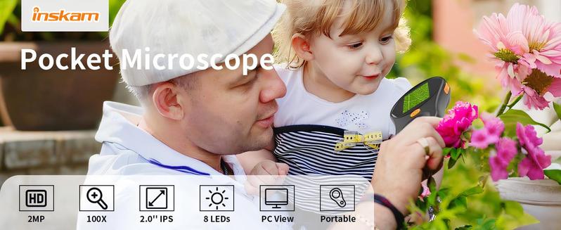 [Visual and shareable 2-inch LCD screen] This miniature microscope can take clear close-up photos. You can use this microscope in real time on the screen to get a clear image. Compared with other pocket microscopes, the easy-to-share screen greatly enhances the fun of exploring nature.