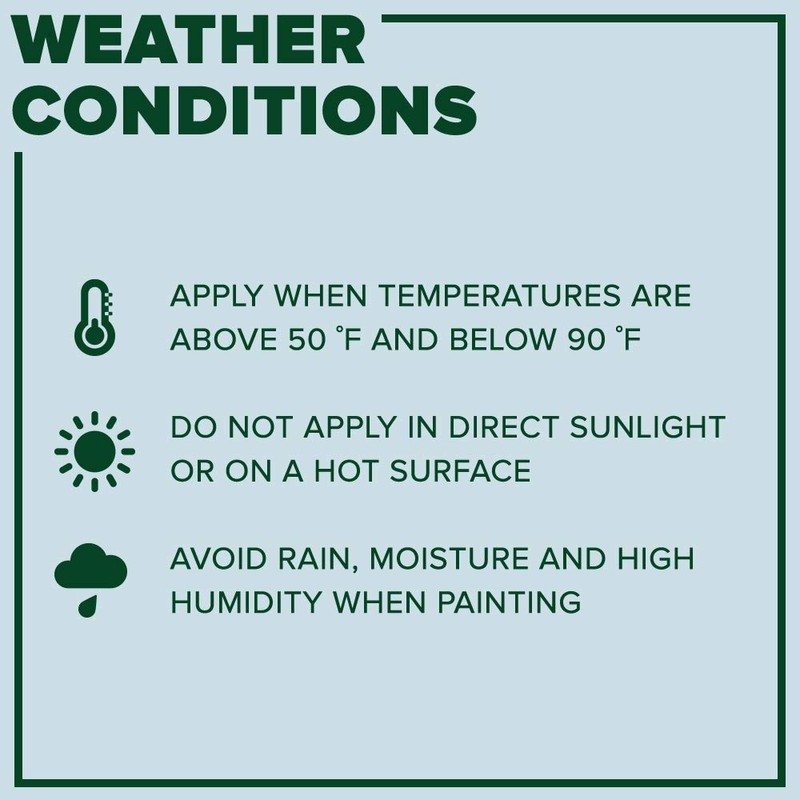 • Apply when surface and ambient temperature is above 50 °F (10 °C) and below 90 °F (32 °C).