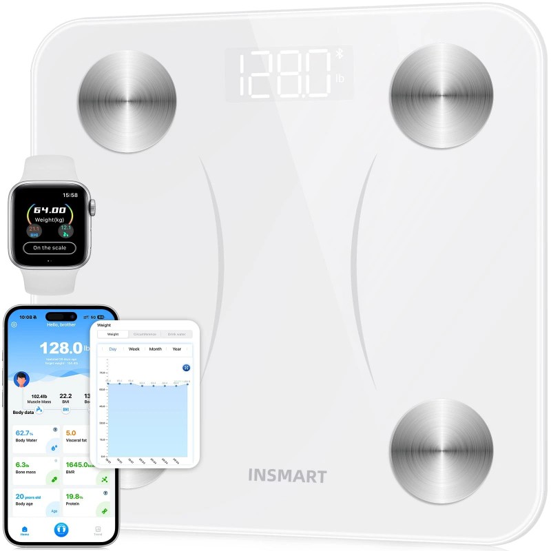 INSMART Bluetooth Body Scale - 17-Point Body Composition, Body Fat, BMI, 400 lb