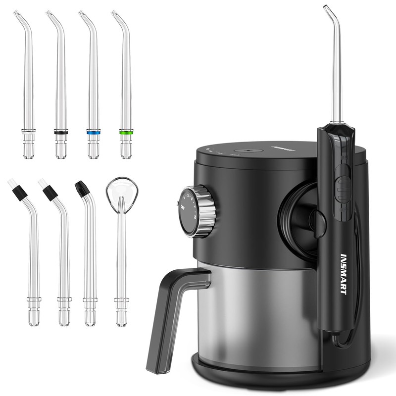 INSMART Water Flosser, Rechargeable and Portable for Teeth, Braces, 10 Pressure Levels, 8 Water Jet Tips and 600ML Large Water Tank Oral Irrigator for Family (Black)