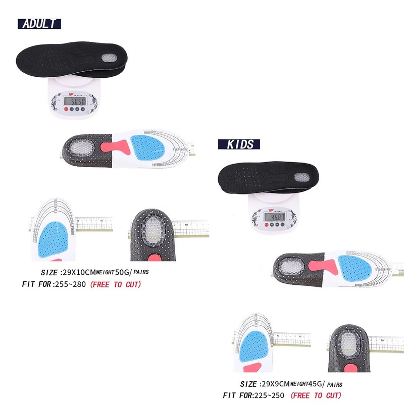 Feature: Tailor-Made Fit: Our silicone shoe inserts are designed to be easily trimmed and customized to fit your specific shoe size. With clear-cutting guides, you can effortlessly modify the inserts to match the contours of your shoes, ensuring a perfect fit and maximum comfort. Superior Cushioning: These shoe inserts are made from high-quality silicone material, providing exceptional cushioning and shock absorption. Enhanced Arch Support: Our shoe inserts feature built-in arch support, promoting proper foot alignment and reducing the risk of common foot problems such as plantar fasciitis or flat feet. Odor and Moisture Control: The silicone material used in our shoe inserts is naturally resistant to odor and moisture. Versatile and Reusable: These silicone shoe inserts can be easily transferred between different pairs of shoes, making them a versatile option for your footwear collection. Specifications: 1. Material: Silicone+ Eva+ Fine Fiber 2. Size: 29x9cm 3. Fit for: 225~250cm (6-9"") 4. Weight: 45g Please note There may be a colour discrepancy between the actual product and photos due to different lighting, angles and varying monitor or screen settings depending on the device used. Please allow a leeway of a few centimetres due to hand measurements.