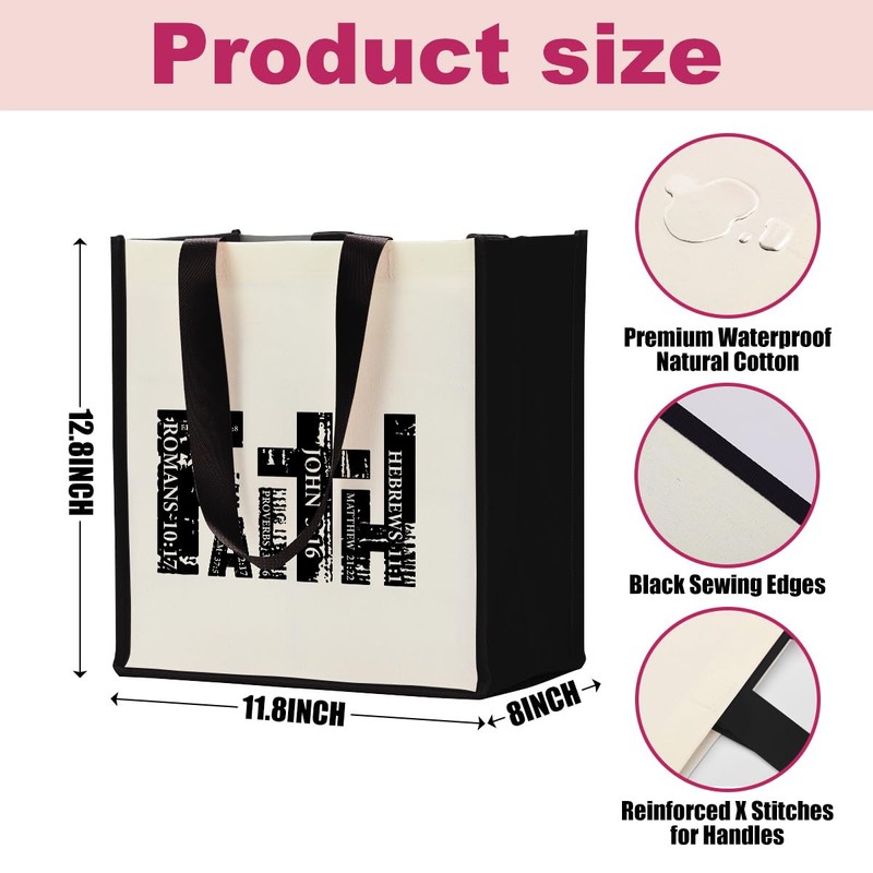 Inspirational Faith Gifts Christian Gifts for Women Canvas Tote Bag, Bible Verse Religious Gifts, Christmas Appreciation Gifts for Friends, Tote Bag for Women Beach Bag Reusable Grocery Bags
