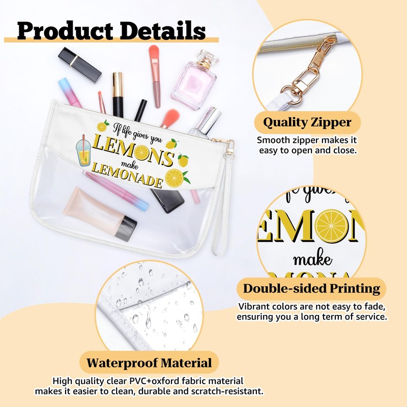Inspirational Gifts for Girl Women Inspirational Quotes Makeup Bag Positive Motivational Gift for Her Daughter Sister Friend Cosmetic Bag Lemon Lover Present for Female Travel Pouch with Zipper