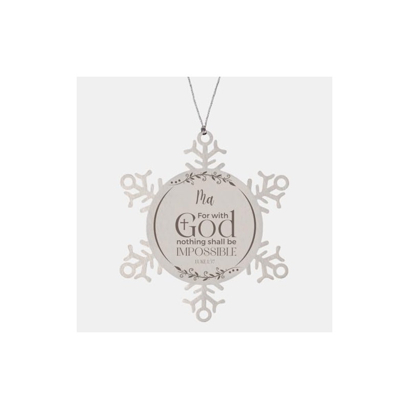 Inspirational Ma Christmas Ornament Engraved Snowflake for Colleague Coworker Family, Ma Luke 1:37 for with God Nothing Shall be Impossible, Bible Verse Religious Quotes Gifts for Ma Custom Name