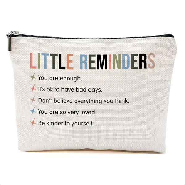 Inspirational Motivational Gifts Makeup Bag, Mental Health Gifts Little Reminders for Women Cosmetic Bags Makeup Pouch, Daily Affirmations for Women Girls Friends