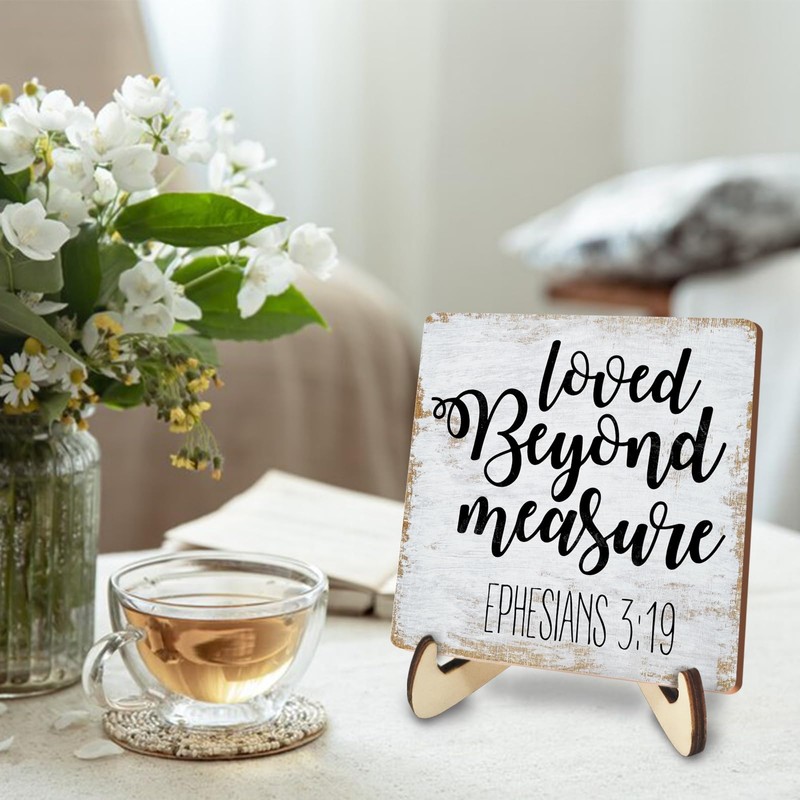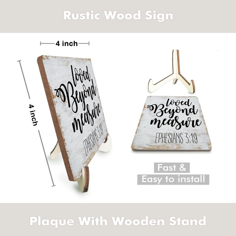 Inspirational Positvie Rustic Desk Decor Decorative Christian Gifts Religious Bible Verse Faith Decoration for Home Farmhouse Office Table Shelf Tiered Tray Plaque with Wood Stand