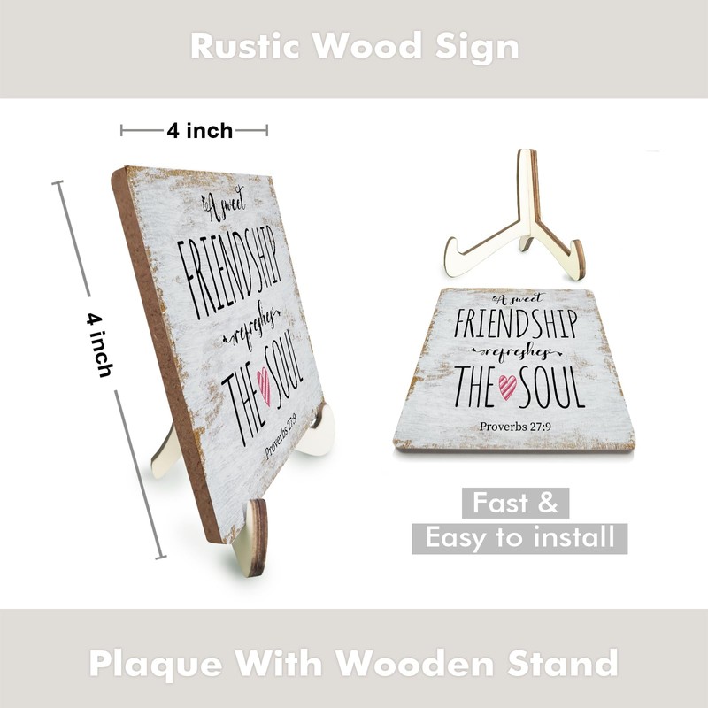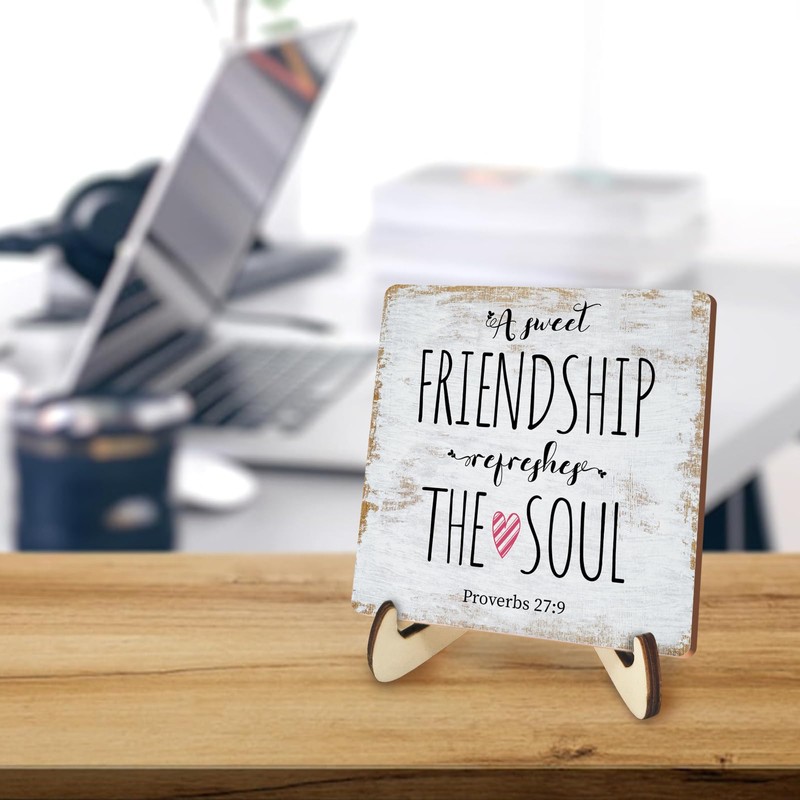 Inspirational Sign Rustic Desk Decor Decorative Christian Friendship Gifts Religious Bible Verse Faith Decoration for Home Farmhouse Office Table Shelf Tiered Tray Plaque with Wood Stand