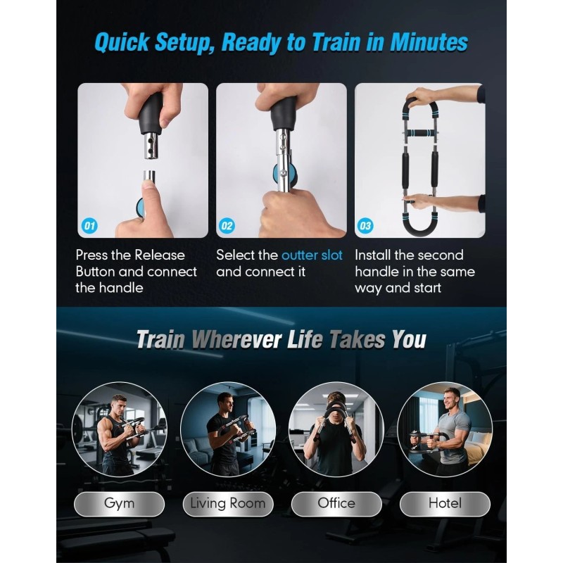 - 【Full Upper Body Workout】: Unlock full upper body power with the Rovista twister arm trainer—target your chest, shoulders, arms, back, and core with precision-guided exercises from our included workout chart. One compact tool, endless moves—replace bulky machines and transform your strength routine anytime, anywhere.