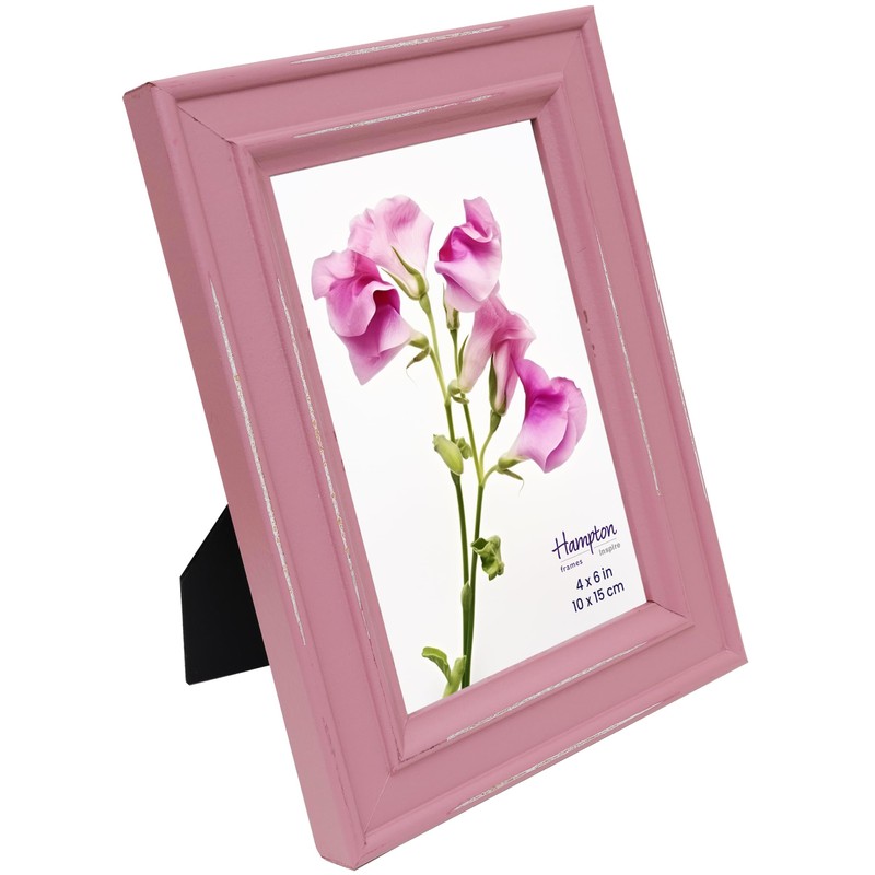 - Pink Distressed Photo Frame Suitable For Both Freestanding or Wall Mounting in Landscape or Portrait Orientation