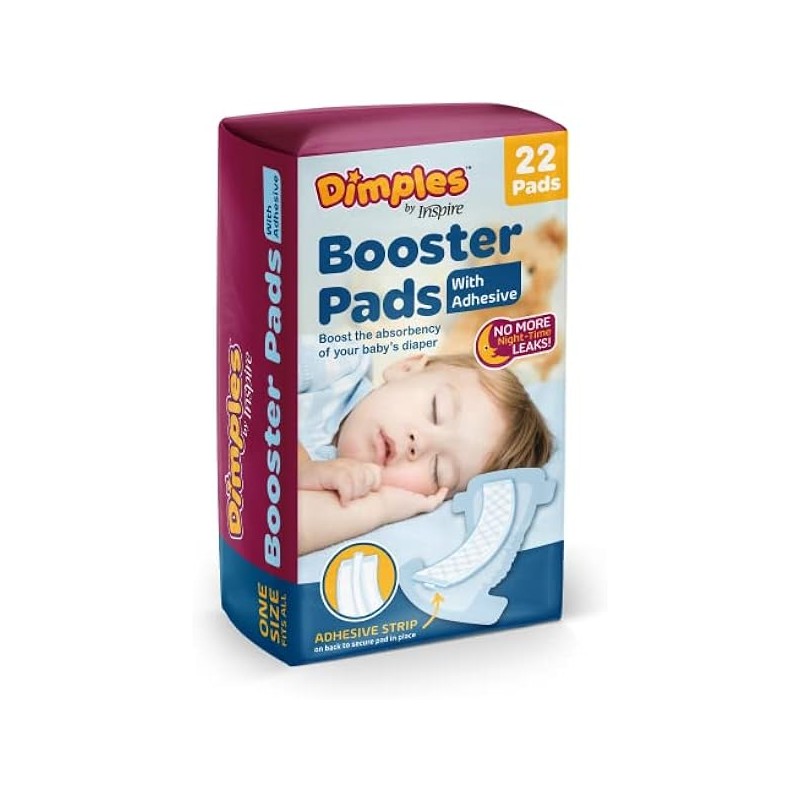 Inspire Dimples Booster Pads, Baby Diaper Doubler with Adhesive for Secure Fit | 1 Size Fits All Diapers | Boosts Absorbency No More leaks 22 Count