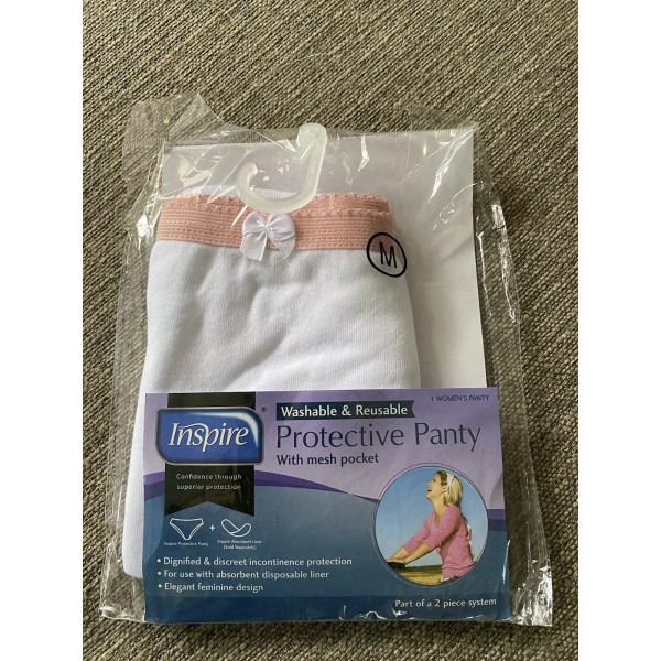 Inspire Washable & Reusable Protective Panty With Mesh Pocket White Medium.