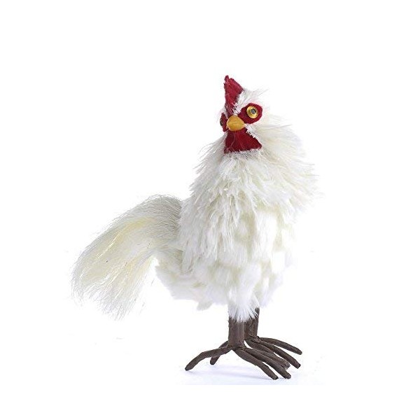 - Soft Fluffy White Standing Artificial Rooster for Displays, Crafts, and Creating