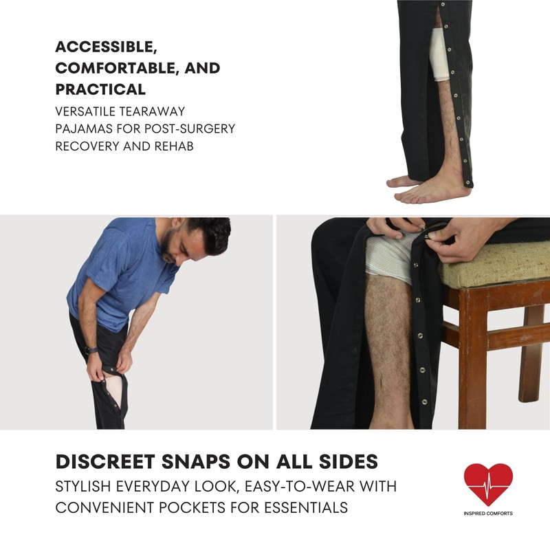 - [Classic Design, Enhanced for Practical Use] With the relaxed look of lounge pajamas, these tear-away pants include DEEP SIDE POCKETS, making it easy to store your phone, wallet, and other small items.