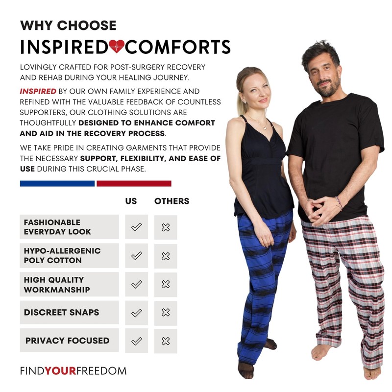 - [Recuperate in comfortable fabric] Our post surgery pajama pants combine cotton-polyester softness with a fuzzy FLANNEL feel to keep you comfortable and cozy all day long.