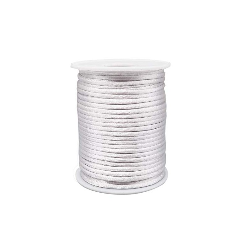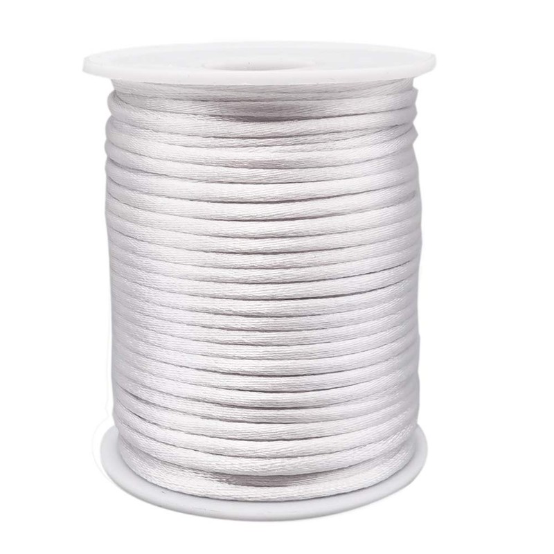 INSPIRELLE 3mm White Satin Cord Rattail Silk Cord Chinese Knot Thread for Jewelry Making, 50 Yards Spool