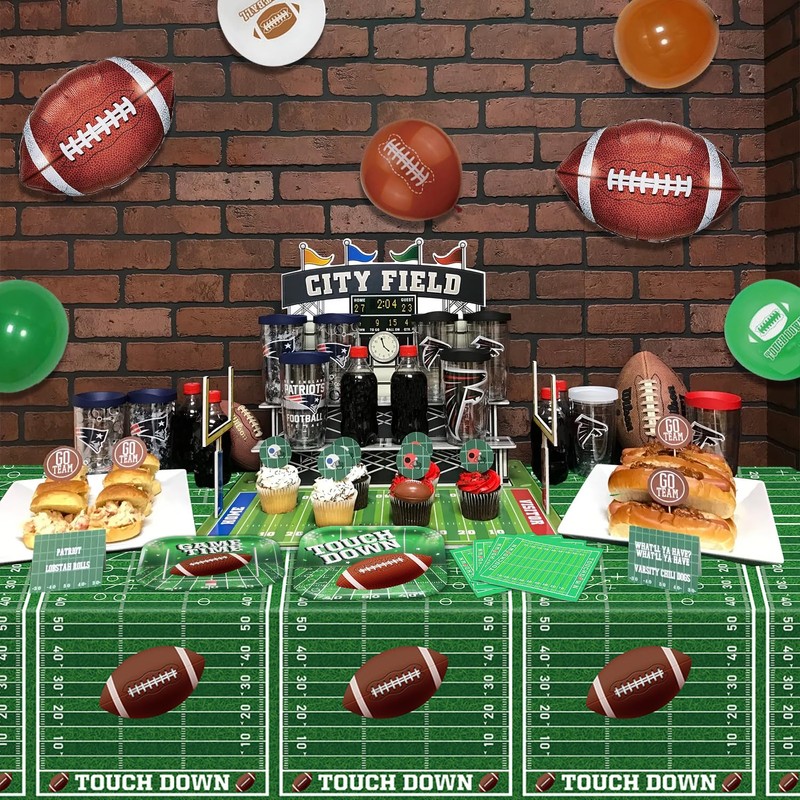 - Football decorations: Football tablecloth perfect for football-themed party, game day party, sports-themed party, and birthday party favors and party supplies.