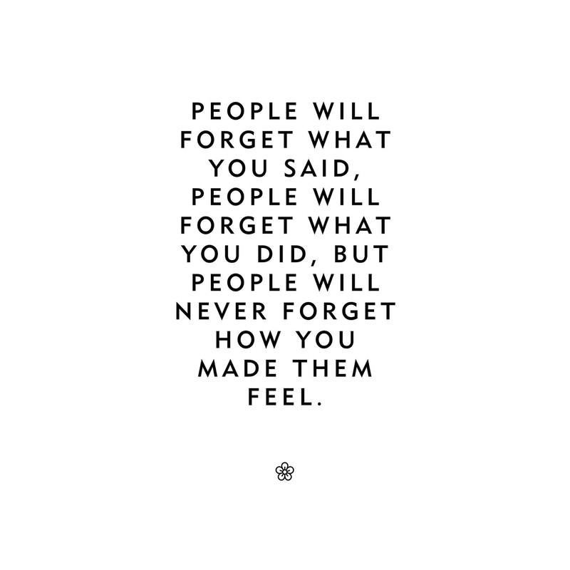 The full text says "People will forget what you said, people will forget what you did, but people will never forget how you made them feel."