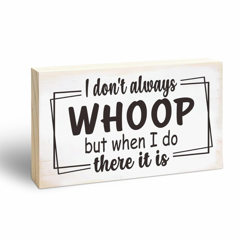 Inspiring Wooden Block Sign - I Don't Always Whoop But When I Do There It Is - Positively Encouraging Pine Wood Plaque, Home & Office Decorations, Table, Shelf, Desk Decor & Accessories - C05