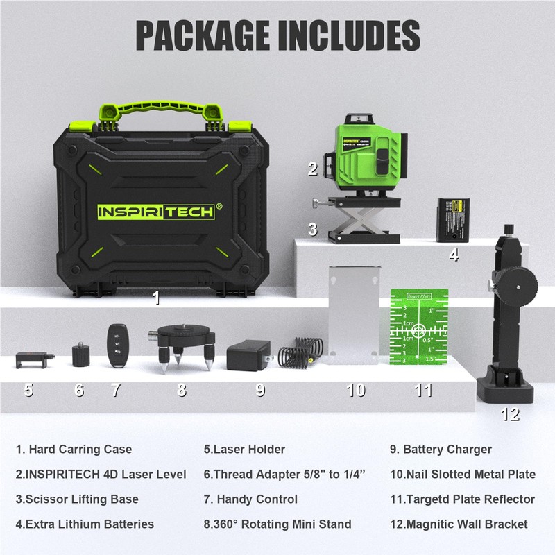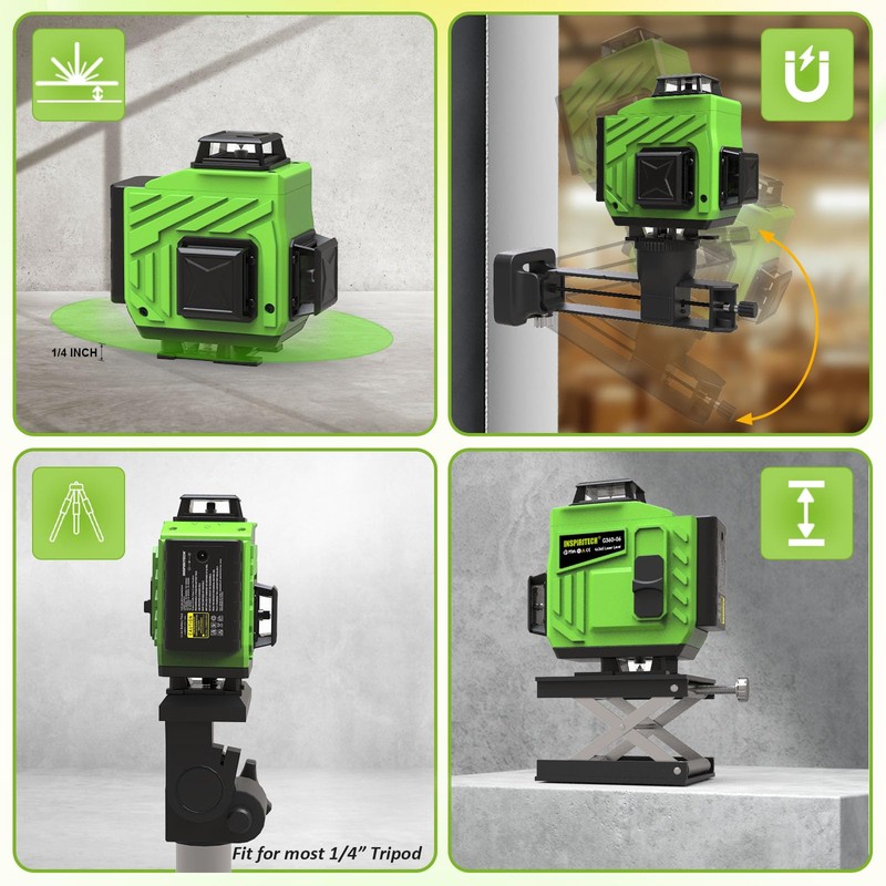 INSPIRITECH 16 Line laser level 360 Self Leveling, 4x360 Cross Line 4D Green Beam Lazer Leveler Ideal for Floor, Wall & Ceiling Construction, Picture Hanging & Multi Surface Alignment