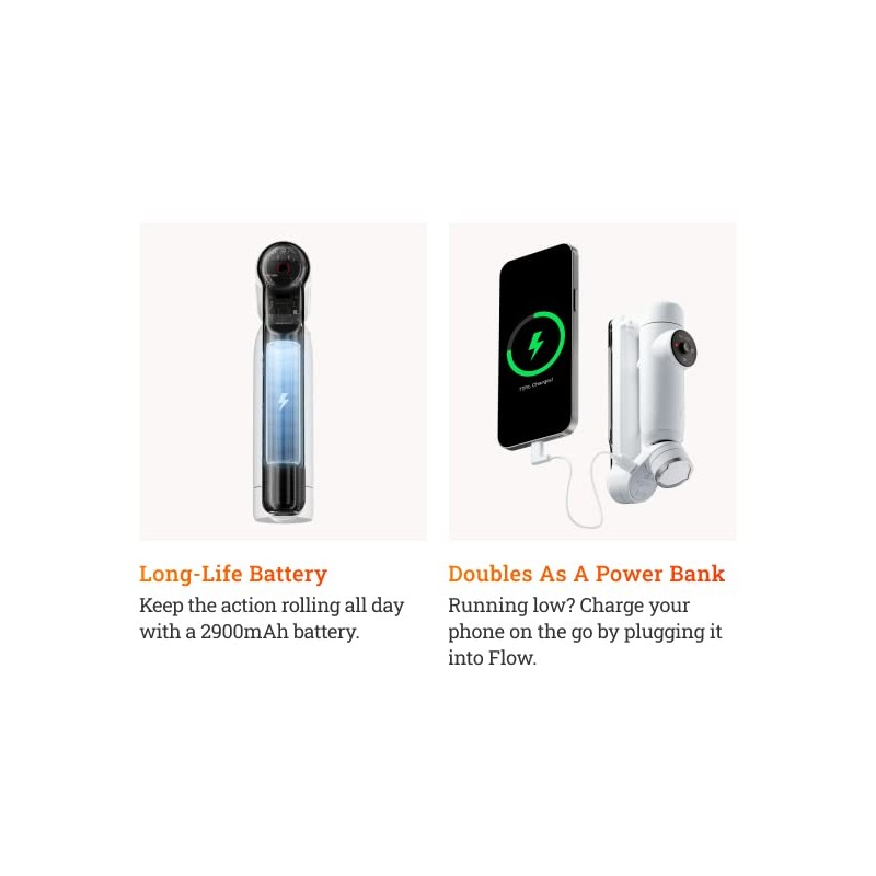 - All Day Battery Life: 12 hours of performance means the action lasts all day with the top performance on the market. You can even use Flow to reverse charge your phone.