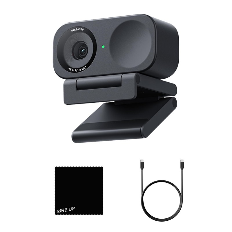 - In the Box: 1x Insta360 Link 2C, 1x Magnetic Mount, 1x USB-C Cable, 1x USB-C to A Adapter, 4x Recognition Markers, 1x User Guide, and 1x RiseUP Lens cloth.