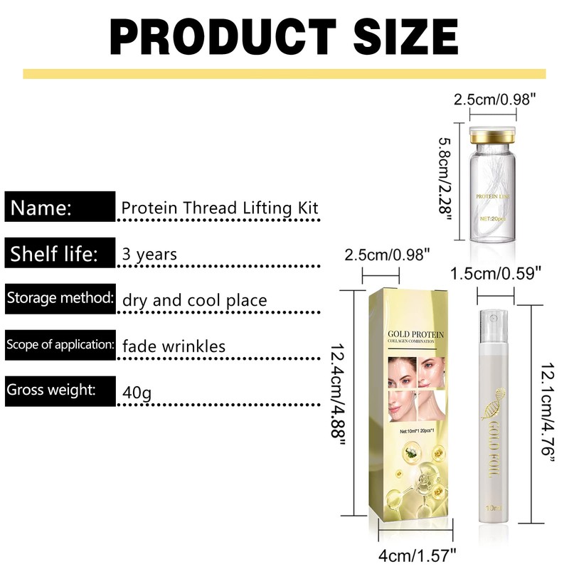 - Protein thread lift set: active collagen silk thread. The golden protein thread on the face, face and neck promotes youthful skin, reduces fine lines and wrinkles and provides the skin with deep moisture.