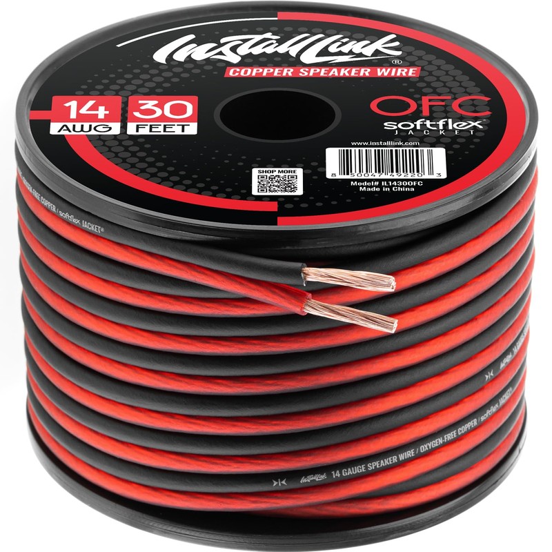 - PREMIUM OFC SPEAKER WIRE [ Frosted Red/Black | 30-feet (9.1m) | 14 Gauge ] - Featuring a double conductor, this stranded wire is constructed from high-grade oxygen-free copper. It is perfect for achieving outstanding audio performance, exceptional flexibility, easy stripping and great polarity identification.