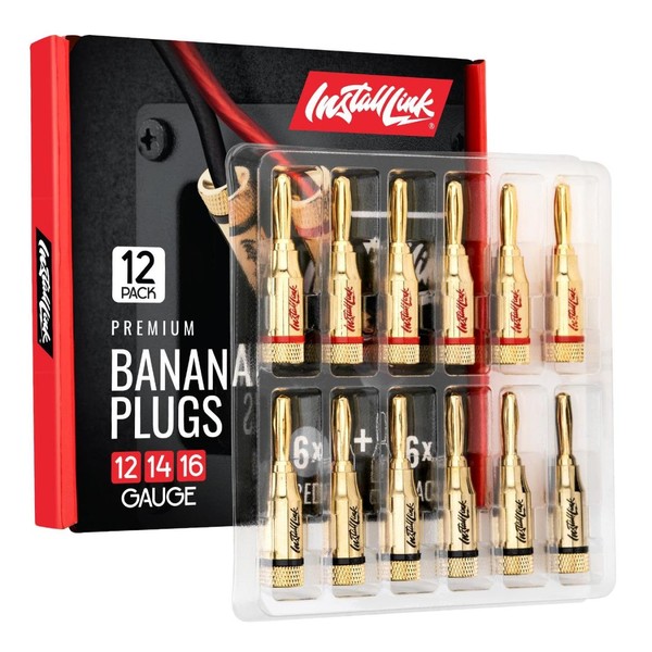 Install Link Banana Plugs for Speaker Wire Cable 12/14/16 AWG (12pcs, 6 Pairs)