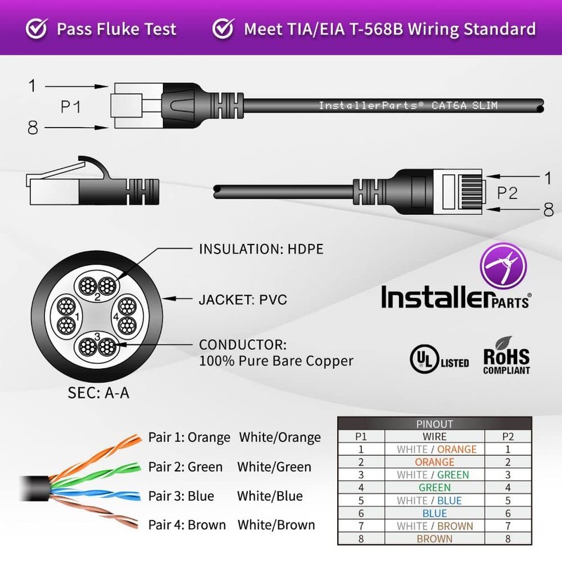 - High Quality 100% Pure Copper: Installerparts Patch Cables Are Made Of 100% Bare Copper Wire With 50 Micron Gold Plated Rj45 Plugs. Our Cables Use High Quality, Long-Lasting Materials And Feature A Highly Durable Design At An Affordable Price.