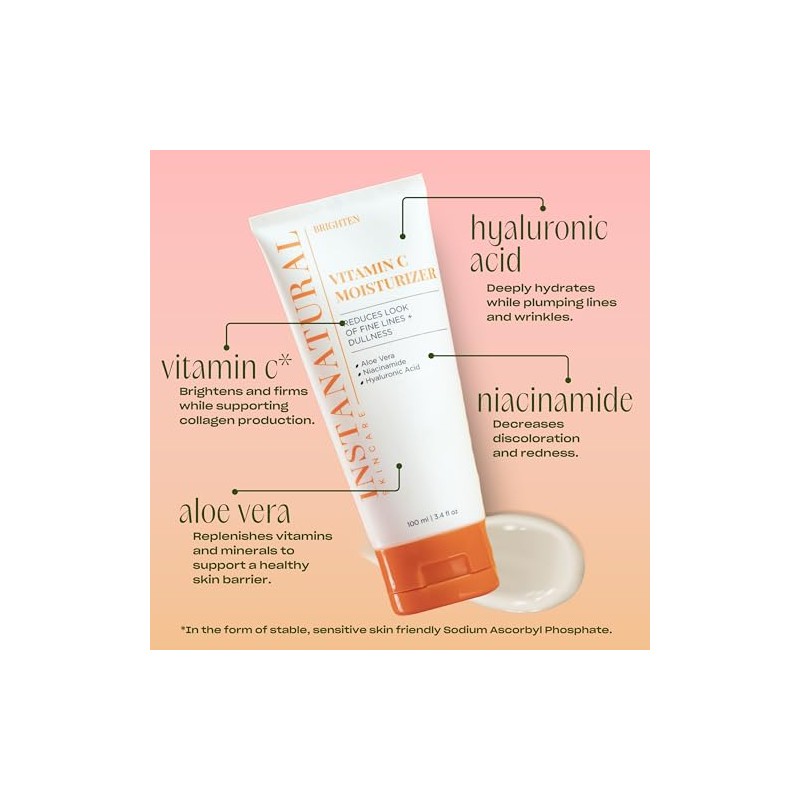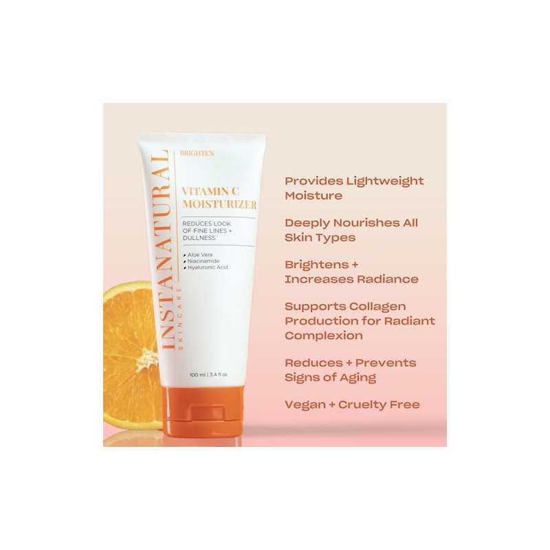 InstaNatural Vitamin C Moisturizer Cream - Anti Aging Face Lotion with Hyaluronic Acid  Organic Jojoba Oil - Fine Lines, Wrinkles, Hyperpigmentation,