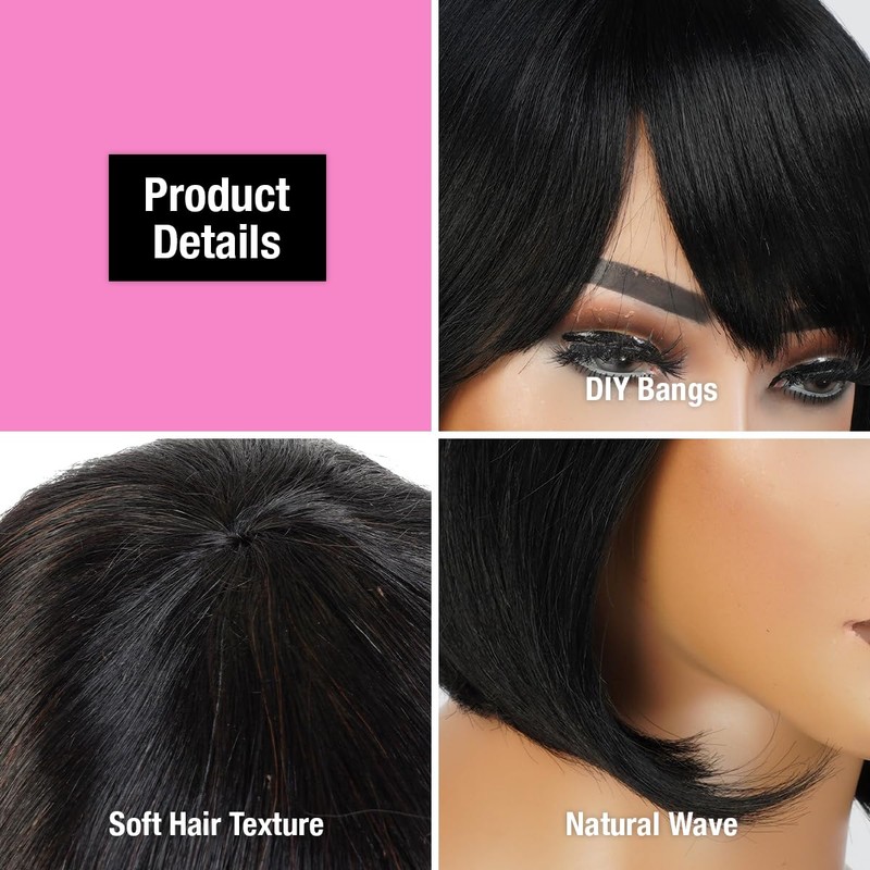 - Hair Material : Our Medium Bob Human Hair wigs with Bangs is made with 100% high quality Human Hair.