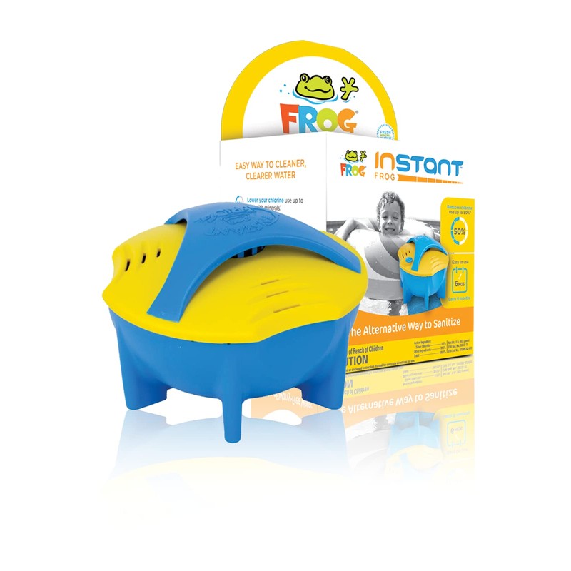 - Instant FROG delivers FROG’s fresh sanitizing minerals for 6 months. FROG’s fresh sanitizing minerals kill bacteria and reduce chlorine use up to 50%*. Less chlorine means the harsh effects of chlorine are out, and more pool fun is in.