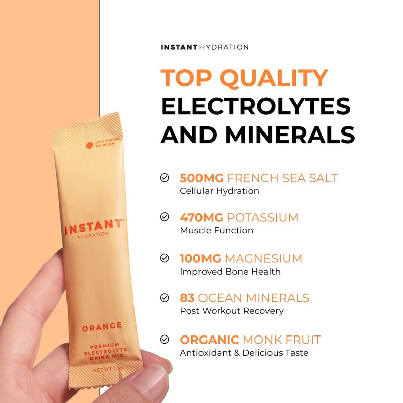 Instant Hydration Electrolytes Powder Packets - Citrus Orange Drink Mix - Zero Sugar - Keto, Vegan, Gluten-Free, Non-GMO - Boost Recovery, Brain Health, Muscle & Tissue Support- 30 Sticks