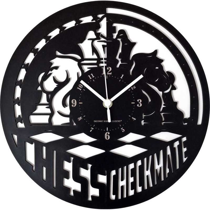 Instant Karma Clocks Wall Clock Chess Master Checkmate Ø12inch, HDF Wood, Black