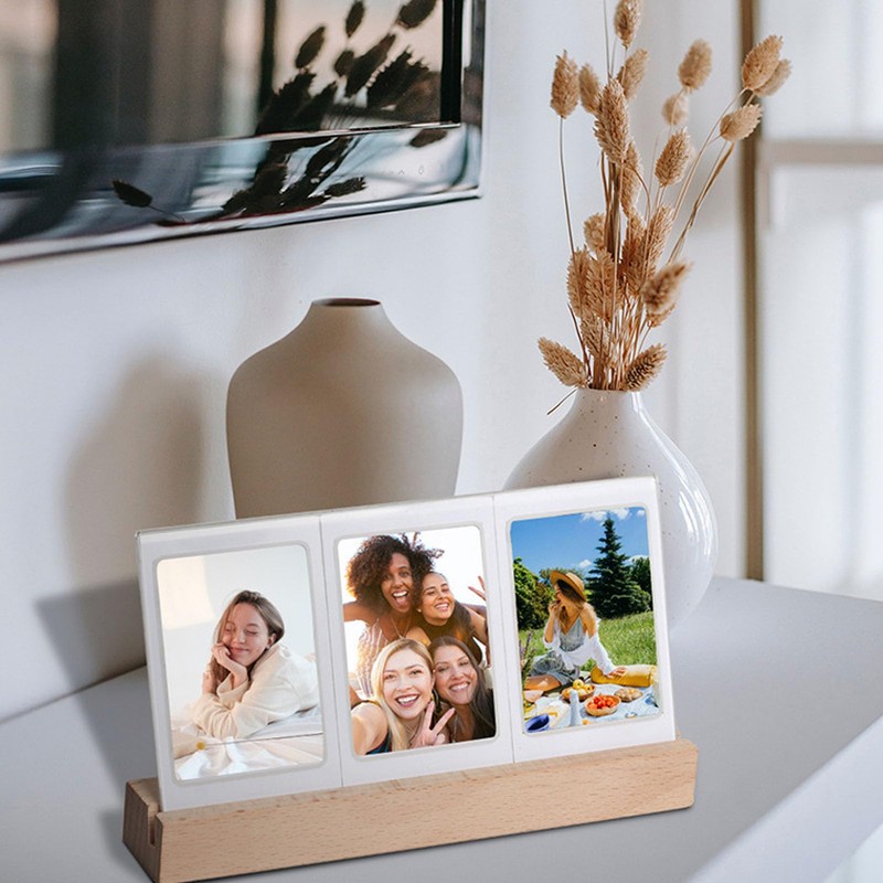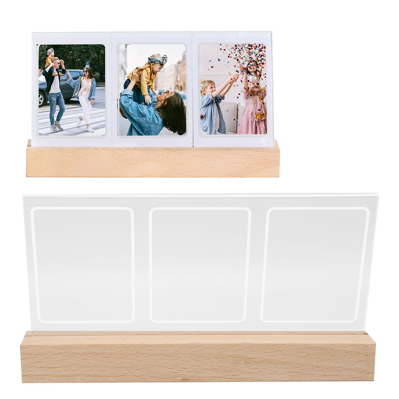Instant Photo Frames, Mini Acrylic Night Light Desktop Picture Frame Display 3 Photos, Gift Photo Frames Clear Transparent for 3 Inch Instant Camera Films