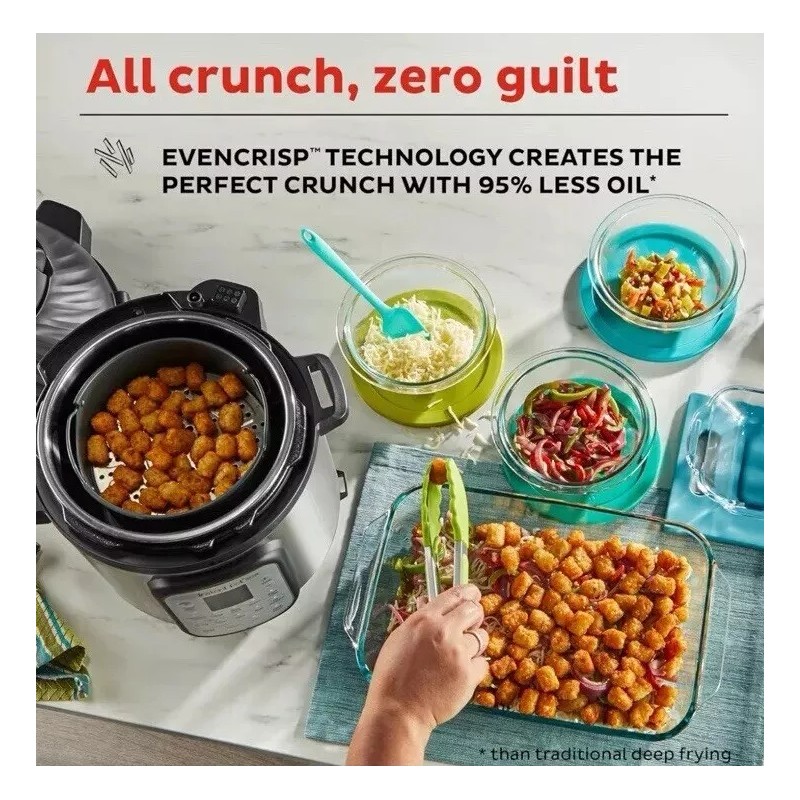 QUICK ONE-TOUCH COOKING: 11 customizable Smart Programs for air frying, pressure cooking ribs, soups, beans, rice, poultry, yogurt, desserts and more. Includes free app with over 1900 recipes!