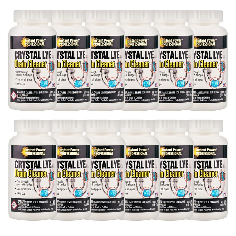 Instant Power Professional Crystal Lye Drain Cleaner, Drain Clog Remover Made of Pure Lye Crystals (12 Pack)