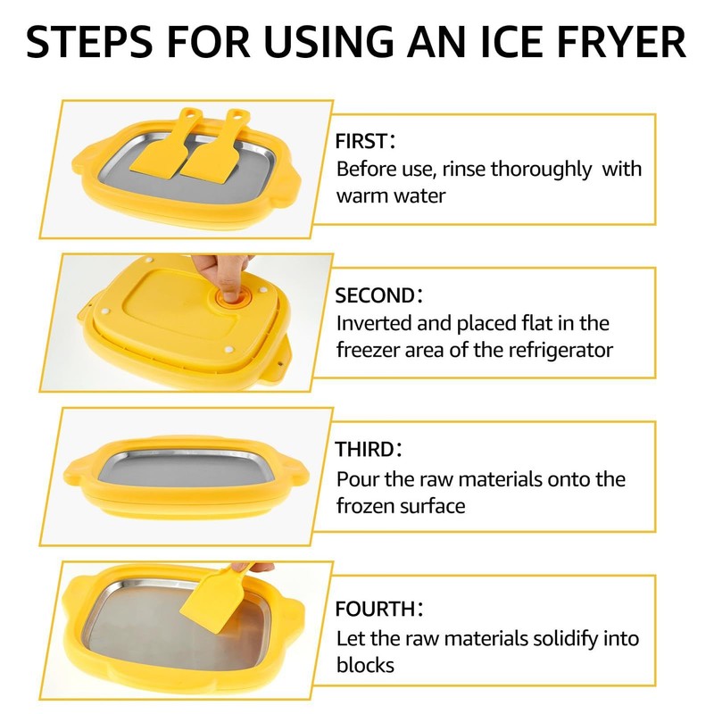 - ➢Convenient to Use: Enjoy homemade dessert with zero hassle. Pour your mixture onto the ice tray, stir until smooth, and freeze for 8-12 hours with our Instant Ice Cream Maker. Scoop and add toppings for seamless, delicious ice cream rolls.