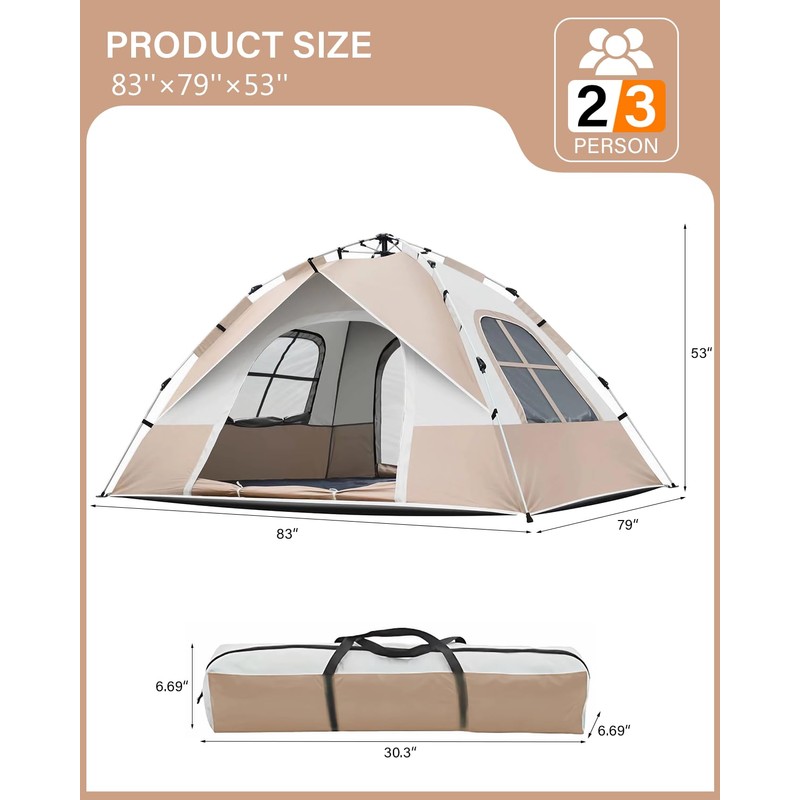Instant Tent 2-3 Person (Beige) - Automatic Pop Up Camping Tent/Silver Coating UV Protection, Waterproof Portable for Backpacking & Camping with Carring Bag(Easy Setup & Fold)
