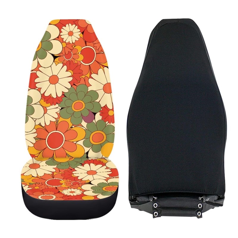 INSTANTARTS Beauty Hippie Floral Car Seat Covers Front Seats Only 2 Pieces Set Groovy Flower Vehicle Seat Protector Car Mat Cover for Most Cars SUV Sedan Truck