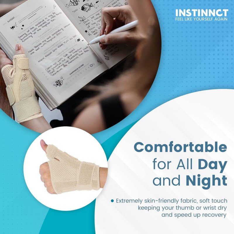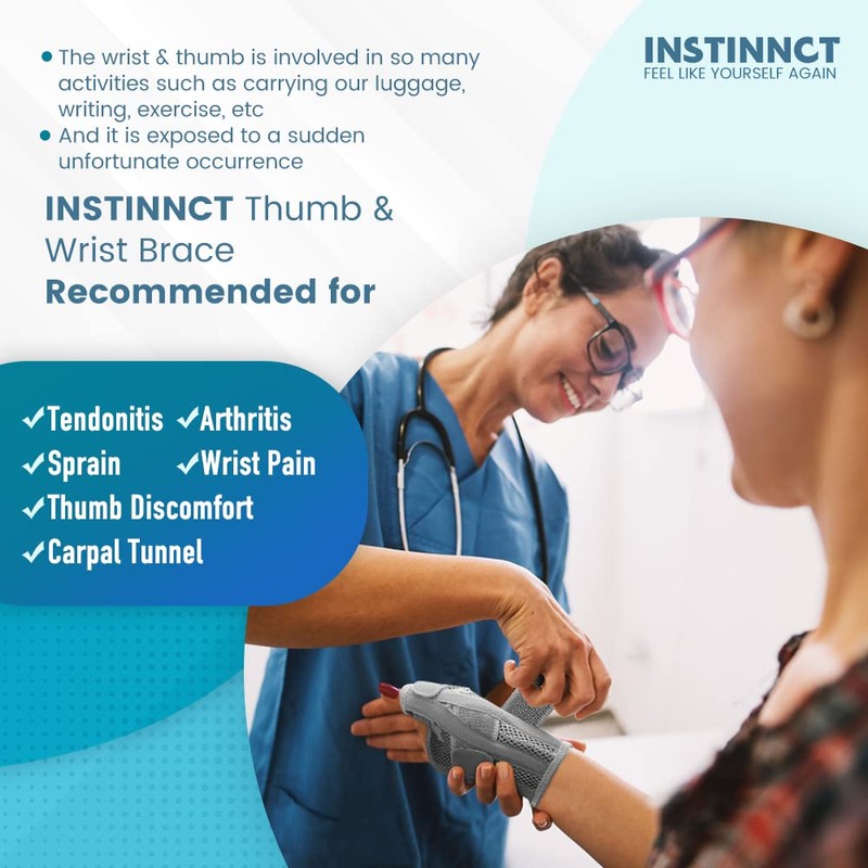 INSTINNCT Wrist Thumb Support Brace, Fully Adjustable Thumb Brace for Men and Women, Thumb Flexible Splint for Tendonitis and Thumb Pain & Injury, Fits Both Right Hand and Left Hand