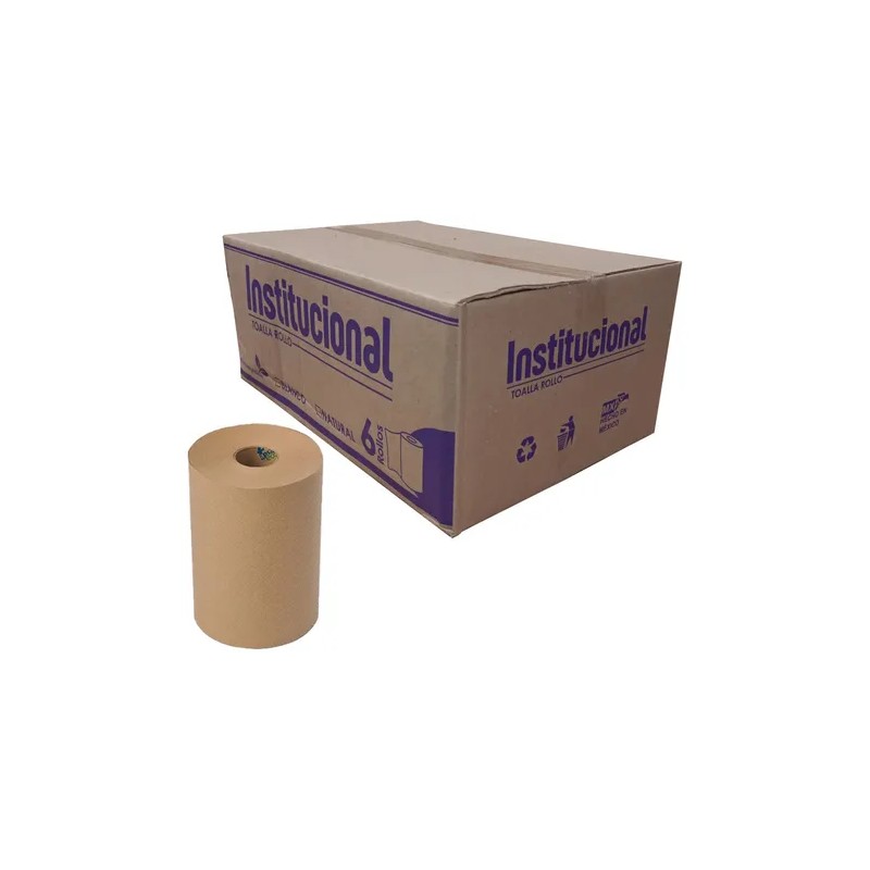 Descripción Limpia: Este paquete incluye 6 piezas de Toalla Rollo Institucional Cafe de la marca INSTITUCIONAL, diseñadas para mantener la higiene en negocios o hogares. Cada rollo tiene una longitud de 180 metros, lo que lo hace ideal para un uso prolongado. La textura suave de las toallas garantiza una experiencia cómoda al limpiar superficies o secar las manos. Además, al ser de simple hoja, son prácticas y eficientes para el uso diario.