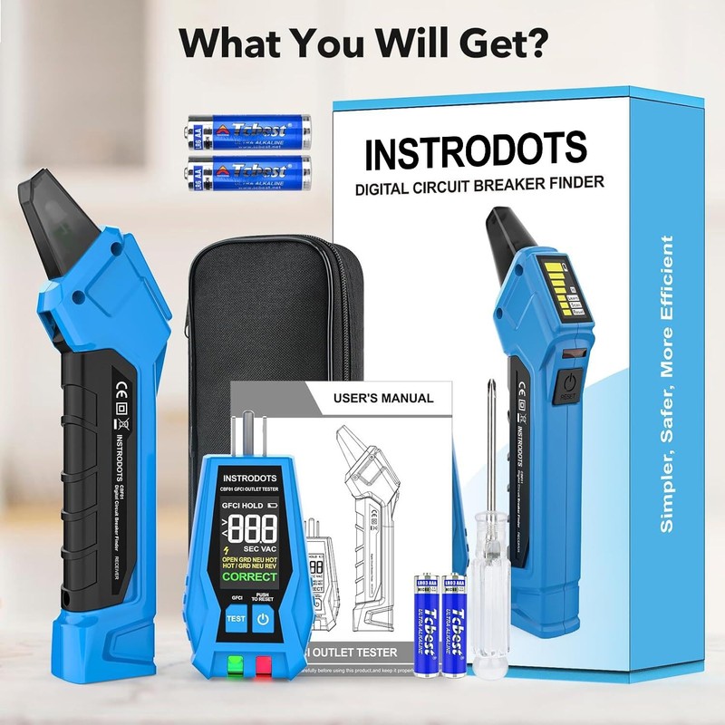 - ACCURATE CIRCUIT BREAKER IDENTIFICATION - The INSTRODOTS CBF01 circuit breaker finder can quickly and accurately locate the correct breaker on electrical systems. The digital breaker finder is compatible with standard 90-135V AC 50/60Hz breaker systems, making it suitable for a variety of electrical systems and installations. It is a great electrician tool for troubleshooting electrical issues in homes, offices, factories, or during grid upgrades, etc.