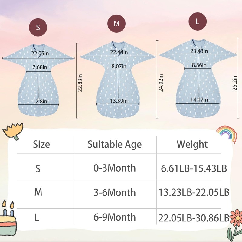 - GREAT TRANSITIONAL SWADDLE: Highly elasticized full sleeves allow baby to soothe himself by sucking his fingers with no constriction and place their arms arbitrarily so don’t worry about scratching their faces. At the same time, The unique design of the arms provide enough space for baby to roll over himself.