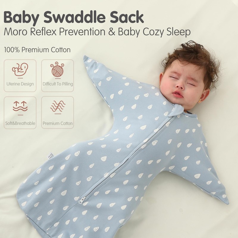 insular Baby Transitional Swaddle with 2-Way Zipper Newborn Sleep Sack Arms Up Infant Sleeping Bag Wearable Blanket, Raindrop, 0-3 Month
