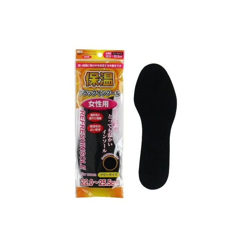 • Size: Approx. One size fits all (8.7 - 10.0 inches (22.0 - 25.5 cm)); Material: 100% polyester; Product Name: Heat preservation; Black insole; Women's; Uses: Footbed; Warm, Cold Protection, Winter Cushion; Thick; Keyword, Isol Nakaji, Insole, Hoon, Bonkan, Adhatsukan, Women; Manufacturer's Name; Category. G090 001 □ Quantity: 1 pair (1 each left and right side)
