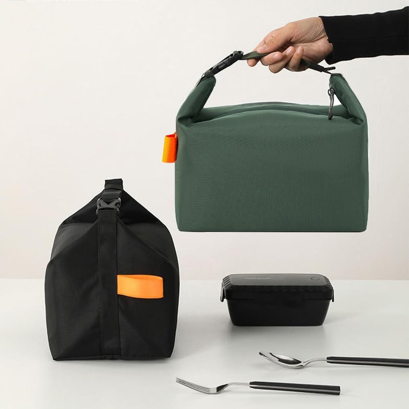 Insulated Lunch Bag for Bento Lunch Box Large Capacity Thermos Compatible Oxford Waterproof Oil Proof Soft Cooler with Snap Button Handle (Green)